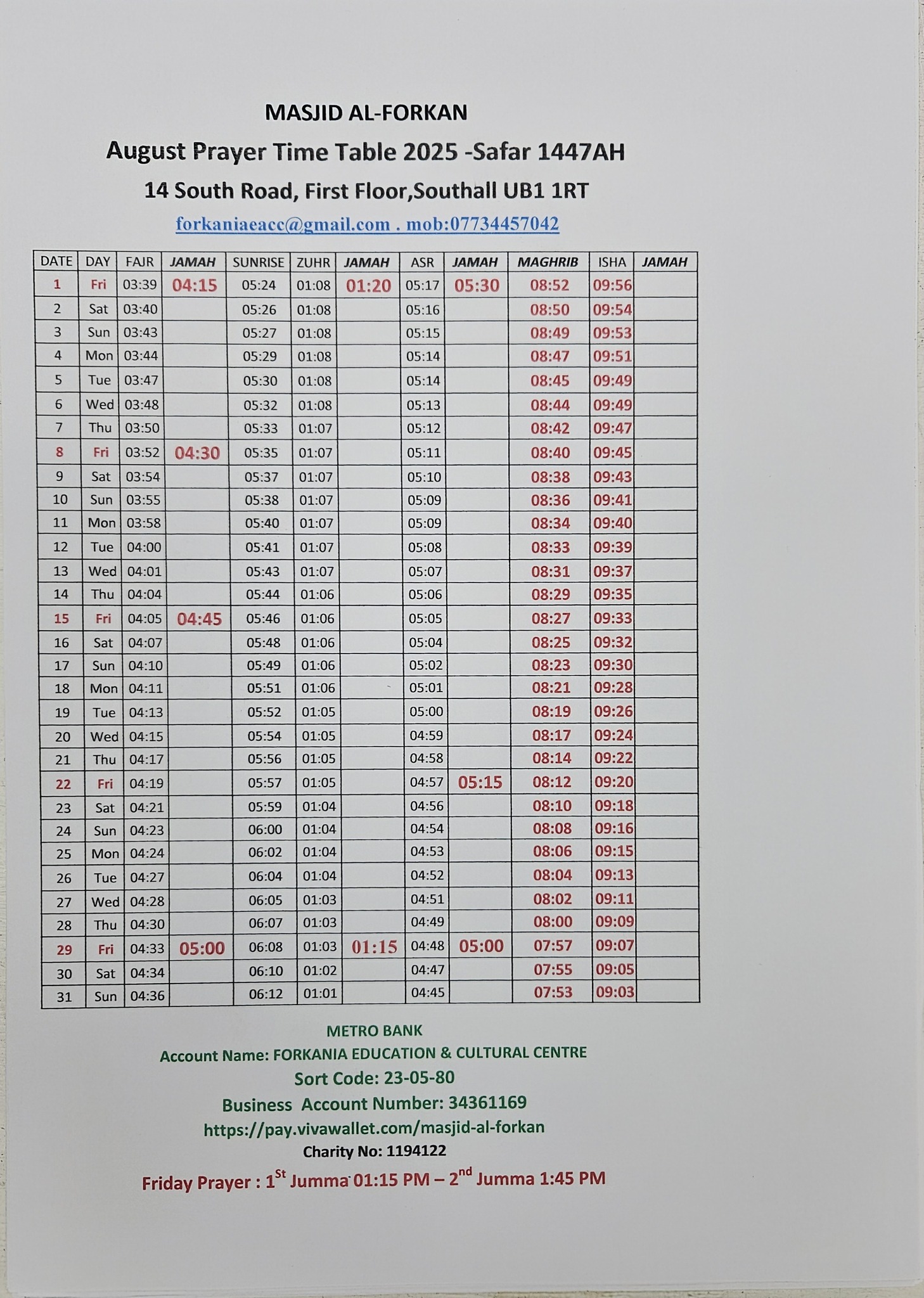 Forkania Education & Cultural Centre located in Pt first floor, 27-29 South Road, Southall, Middlesex, London Post Code UB1 1SU. Our vision is to spread Islamic Dawah around the world.
